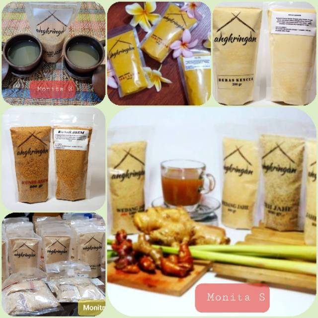 4 sdm susu kental manis, 700 gr jahe (bakar dulu, kupas lalu memarkan), 5 ltr air, 14 bh kapulaga, 3 btg kayu manis atau berukuran 5 cm, 14 butir cengkeh, 700 gr gula pasir, 120 gr gula merah.